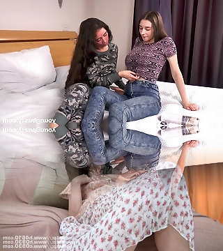 grandma creams daughter-in-law's legs, she accidentally fondles her labia, the daughter-in-law excitedly pulls her pantie