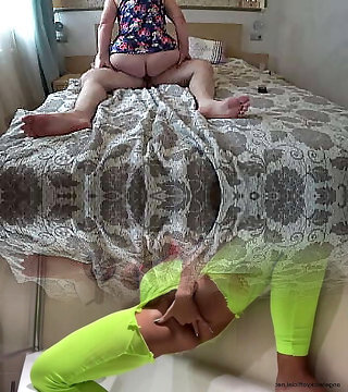 Husband wakes up before wife and starts to eat her shaved pussy which makes her yelling loud - amateur couple real homemade