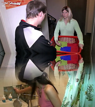 I fuck my stepmom with a big nozzle on the cock, the stepmom's big pussy heavily ends up releasing grease
