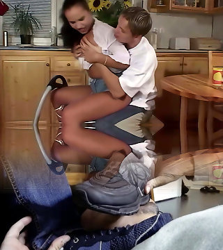 My stepsister asks me to help her take off her pants and I take the chance to put my forearm on her and grasp her caboose