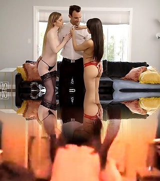 Marvelous sex industry stars in sexy lingerie getting screwed hardcore in a hot ffm three-way action