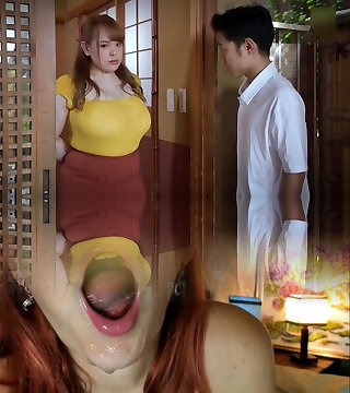 Horny Asian slut, Miho Ichiki, flashes her fat bra-stuffers and shrieks while getting a creampie from 2 super-naughty folks - real JAV threesome!