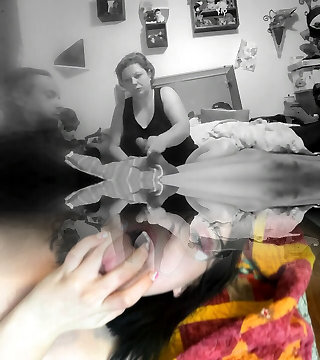 Uber-cute blonde GF need some lessons about blowjobs so my stepmom decided to jump in and help us out