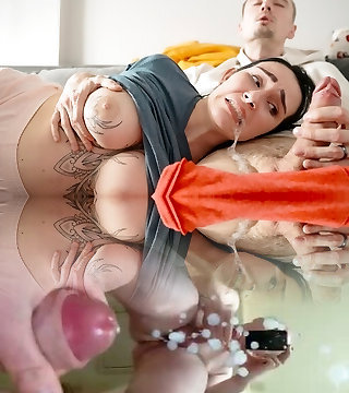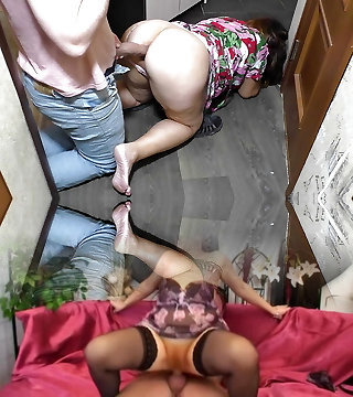 Stepmother got excited when she jerked off his chisel in the bathroom and gave a blowjob before she asked to plow her