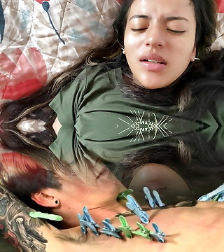 While watching television with my stepdaughter, things start to warmth up, I suck her tits and she deep throats my cock and then fucks