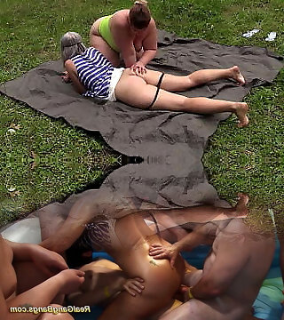 Mature lezzies with big gorgeous asses have fun outdoors and make deep vaginal fisting in a medical glove First-timer fetish and fat vagina