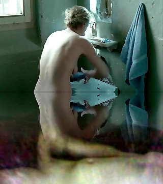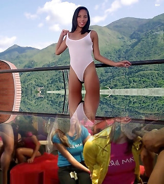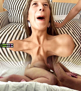 Quirky sexy joy hippy stepmom plays with her boobs and belly whilst exercising on a static bike