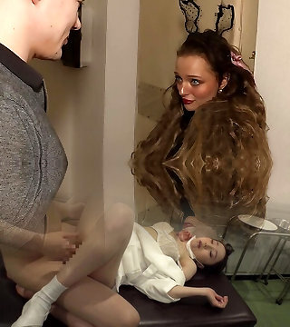 Japanese clothed sex with a hot lady wearing nylon lingerie