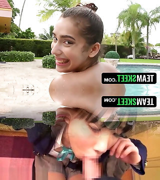 BABE RIDES A HUGE Prick AFTER BLOWJOB IN THE POOL