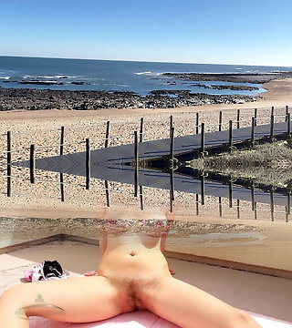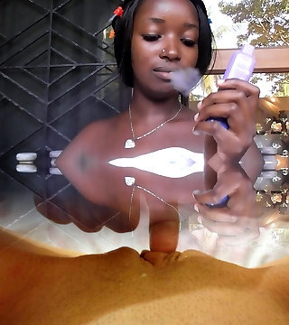 Big-boobed Milf plays with her pussy while smoking - Solo