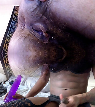 Hotkinkyjo in pink fishnet self ass fucking fisting, prolapse & fuck her backside with huge wine bottle